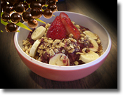 中でも特に人気なのが、バナナや色々なフルーツをトッピングした「アサイーボウル」です。