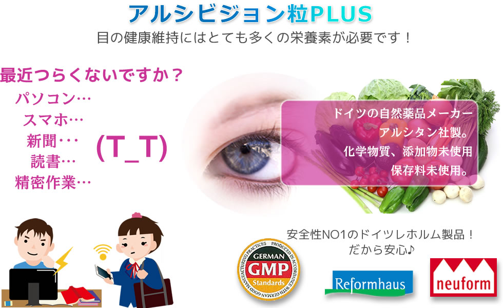 「アルシビジョン粒PLUS」は、ストレス社会で悪影響にさらされている、現代人の“見る読む力“をサポートする健康食品です。「アルシビジョン粒PLUS」にはルテインをはじめ、健康維持に不可欠な栄養素が豊富に含まれています。ぜひアルシビジョン粒PLUSをお試しください。m(__)m